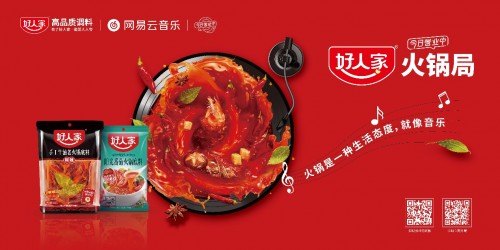 火锅是一种生活态度,就像音乐。如果说火锅是唇齿间的享受,是口舌之欲的放肆,那么音乐就是鼓膜的享受,是情感的共鸣。“好人家”品牌的态度是“苛刻坚守好原料”,做有态度的火锅底料,网易云音乐的态度是希望用音乐的力量点燃对生活的希望,重拾对生活的态度。