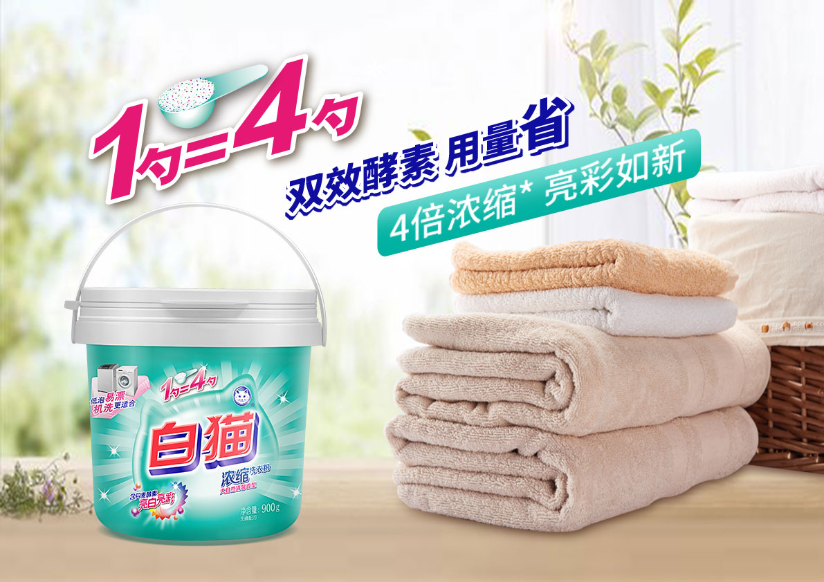 和黄白猫聚焦“浓缩+”布局早、起点高,积累了三十多年的技术经验,赋予产品“绿色化、功能化、浓缩化、个性化”,始终生产绿色环保的浓缩化洗涤产品,积极推动洗衣粉浓缩化的进程。虽然,浓缩化的清洁洗护用品在国内市场目前占有率低,但随着对环境问题的日益关注,消费者也逐渐认识到浓缩产品的优点,原料、包装材料用量少,对环境的排放少,有利于环境保护,因而越来越多的消费者开始接受浓缩产品,发展空间巨大。